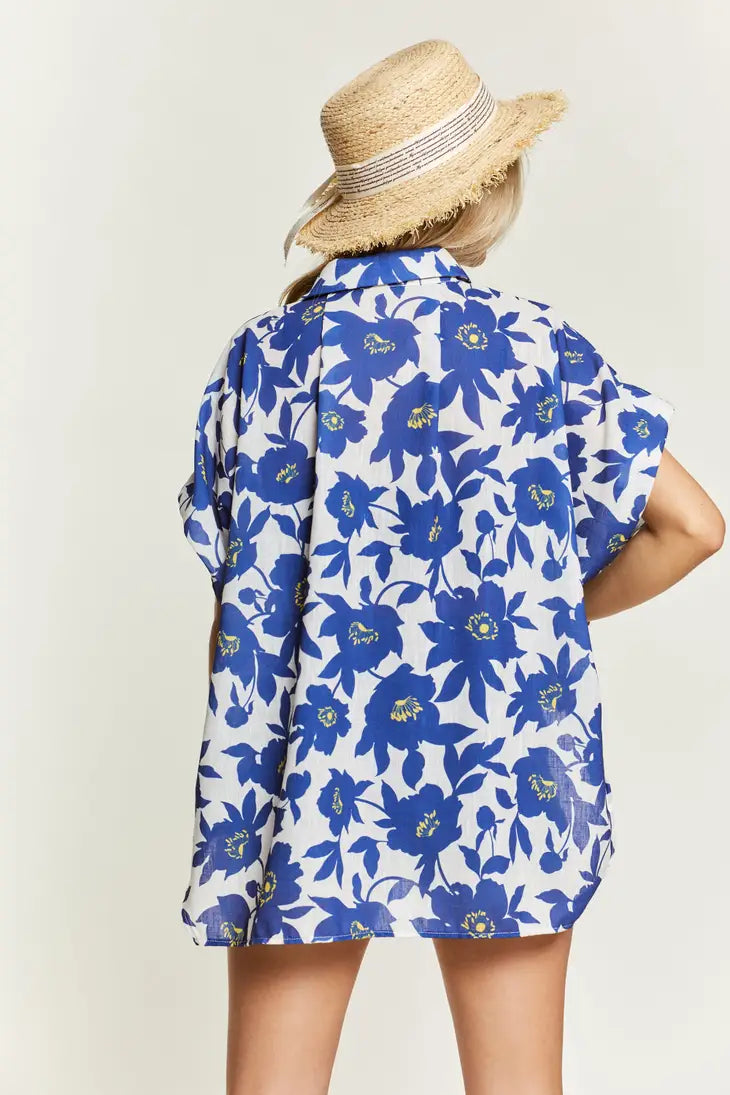 drop shoulder *invisible button down floral blouse with collar *pleat back detail